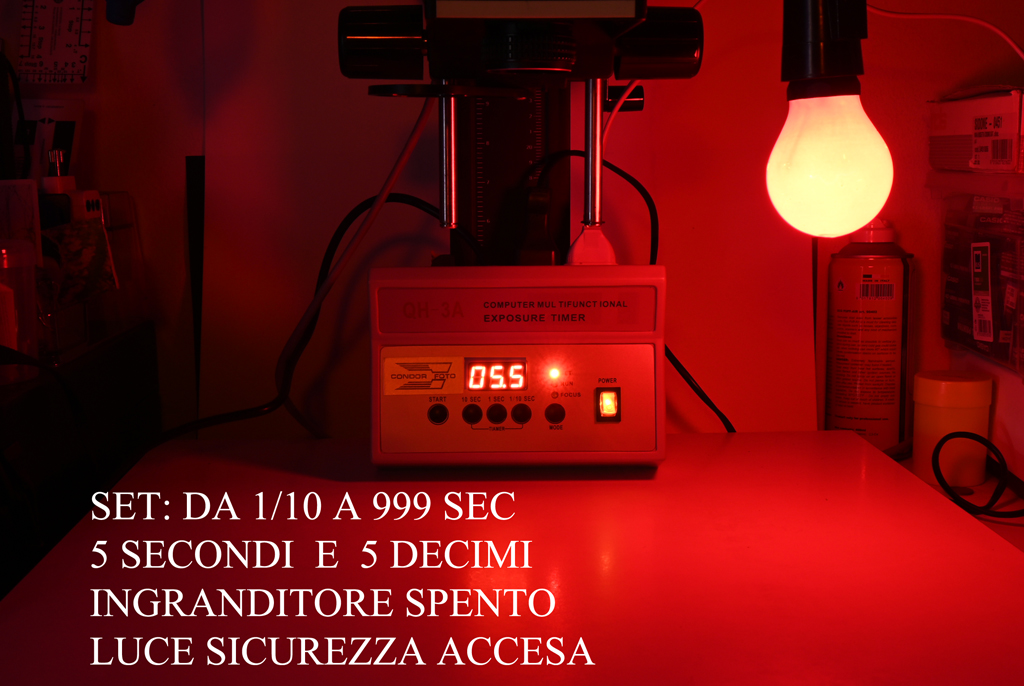 Senza premere alcun pulsante, al termine del tempo impostato, che rimane in memoria, l’Ingranditore si spegne, la luce di sicurezza si riaccende.