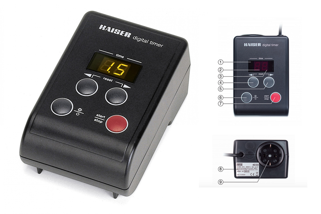 Kaiser ha tuttora in produzione un timer, il Kaiser Digital Timer. Molto compatto, con una bella estetica, riesce a comandare ingranditori armati di lampade fino a 500W, quindi siamo sempre intorno a un carico massimo di 0,6 Amp. I tempi impostabili sono da 01 fino a 99 secondi. Il display digitale di impostazione dei tempi quando si attiva l’ingranditore passa alla funzione countdown ed è possibile arrestare il countdown per poi farlo ripartire. Non è in grado di comandare le lampade inattiniche. E’ in grado di memorizzare il tempo dell’ultima esposizione. E’ tuttora in produzione ( prezzo intorno ai € 175 )