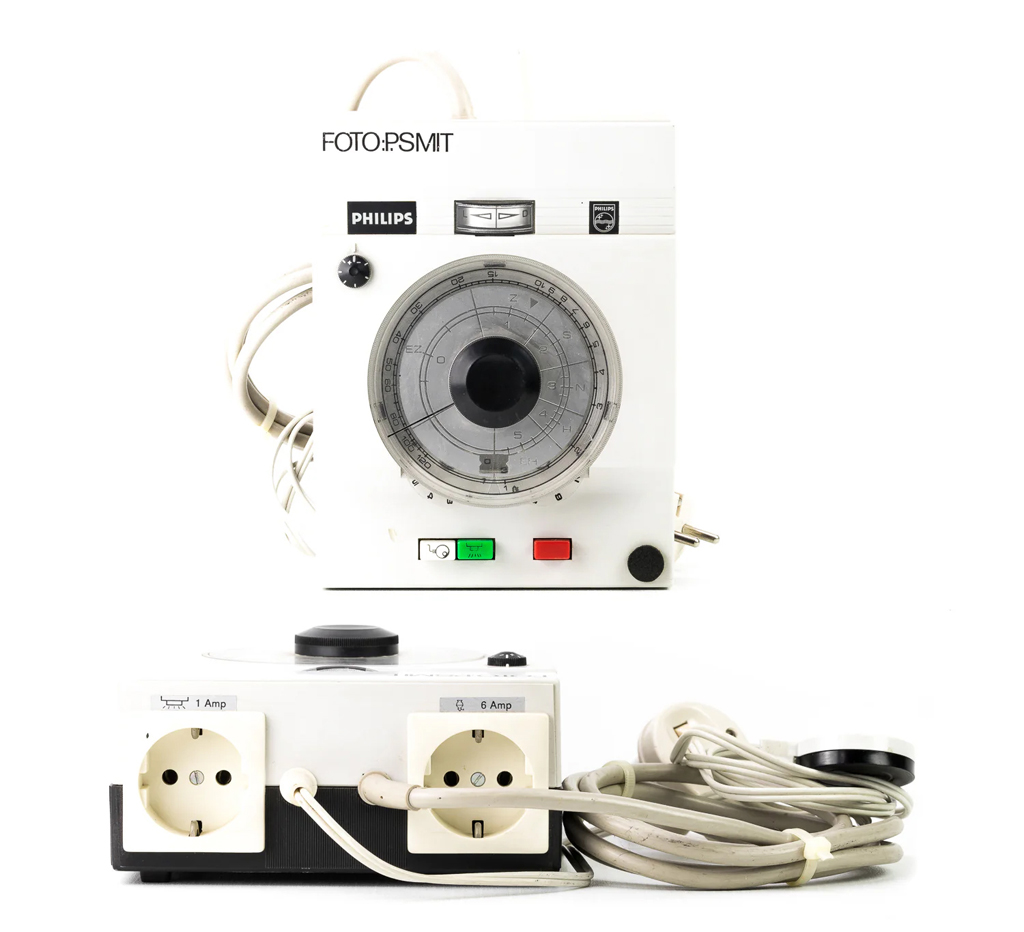 Philips è passata relativamente in sordina nel mondo della fotografia ma in realtà ha prodotto ingranditori, anche con testa a colore, timer e analizzatore incorporato, e timer da stampa, come quello qui raffigurato il PDT 022. Questo modello, che non è tra gli ultimi prodotti, oltre ad essere in grado di programmare l’accensione e lo spegnimento dell’ingranditore, avendo due ingressi distinti da non confondere, può spegnere le lampade inattiniche della camera oscura, quando collegate alla presa di sinistra, mentre l’altra presa, che regge fino a a 6 Amp, va collegata all’ingranditore. In questo modo, quando l’ingranditore si accende, automaticamente si spengono la o le lampade inattiniche ( rosse ) per lavorare meglio nel caso si dovessero fare delle mascherature o bruciature. Inoltre è corredato di una sonda in grado di misurare l’esposizione, Timer ancora più evoluti sono in grado di misurare anche il contrasto suggerito per la stampa. Philips da tempo ha smesso la produzione, con l’ultimo modello, il più evoluto, il PDT 2020 ( fuori produzione, prezzo, a seconda del modello dai € 50 ai € 170 )