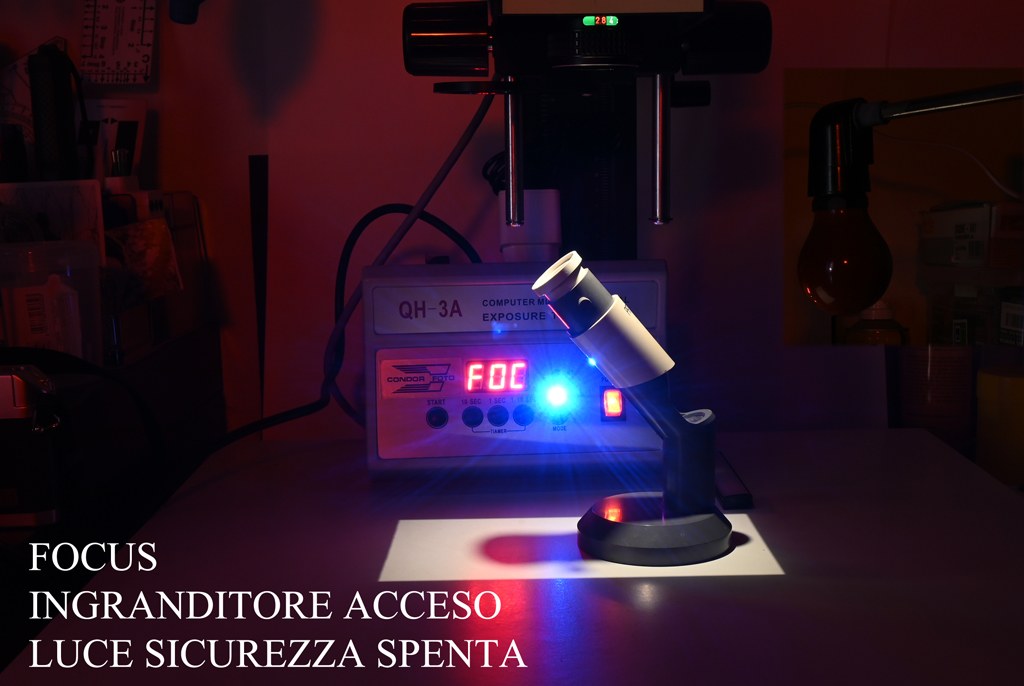 Senza premere alcun pulsante, al termine del tempo impostato, che rimane in memoria, l’Ingranditore si spegne, la luce di sicurezza si riaccende.