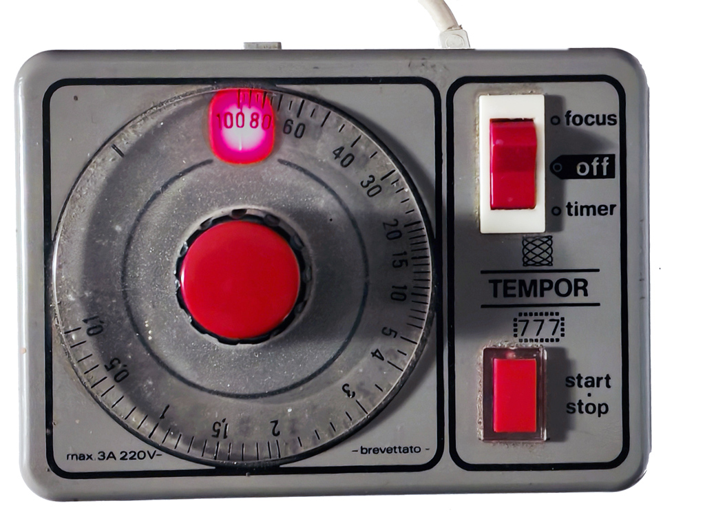 Ingranditore, ottiche e timer sono ancora perfettamente funzionanti. Il timer in questione presumo fosse fabbricato in Italia ma non sono riuscito a reperire alcuna informazioni; attraverso un disco è possibile impostare tempi da 0,1 fino a 100 secondi; non dispone di countdown, non è possibile collegare le luci di sicurezza, ha la funzione focus e start/stop - con spegnimento automatico al termine dell’esposizione, che non può essere interrotta -, ma mi ha accompagnato per una vita intera anche se, e lo scoprirete tra breve, è prossimo alla sostituzione. Ne ho visto un modello usato ma come nuovo in rete a meno di € 80 Euro.