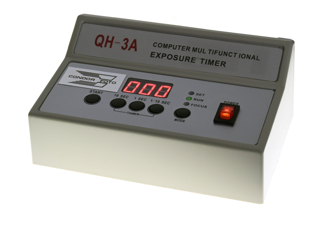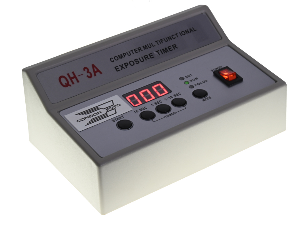 Cominciamo da uno dei modelli più diffusi in Italia, quello della Condor Foto: progettato nel 1965 e fabbricato in Italia fino alla fine del 2025, è Timer elettronico da tavolo. La faccia superiore contenente i comandi d'uso è inclinata per facilitare la visione, poggia su quattro piedini in gomma. La scala per la lettura dei tempi è illuminata da una luce rossa inattinica Collegati ai dispositivi a transistor interni, si hanno i comandi d'uso. Un deviatore a slitta con tre posizioni: focus, stand by e off. Un tasto per l'avvio (start), due commutatori per impostare il tempo (da 10 a 110 secondi e da 0 a 9 secondi). Il tasto "Focus" permette il posizionamento della carta o la messa a fuoco del negativo sul piano di ingrandimento. Dal retro fuoriesce il cavo di alimentazione da connettere alla rete elettrica, con protezione con fusibile interno.. Caratteristiche tecniche: Tempi: da 0.5 a 119 sec. Precisione della temporizzazione ± 2% su tutte le scale. Ripetibilità dei tempi immediata. A differenza di altri Timer non è possibile vedere sulla scala dei tempi, durante l’esposizione, il countdown del tempo trascorso. Oggi è reperibile solo usato